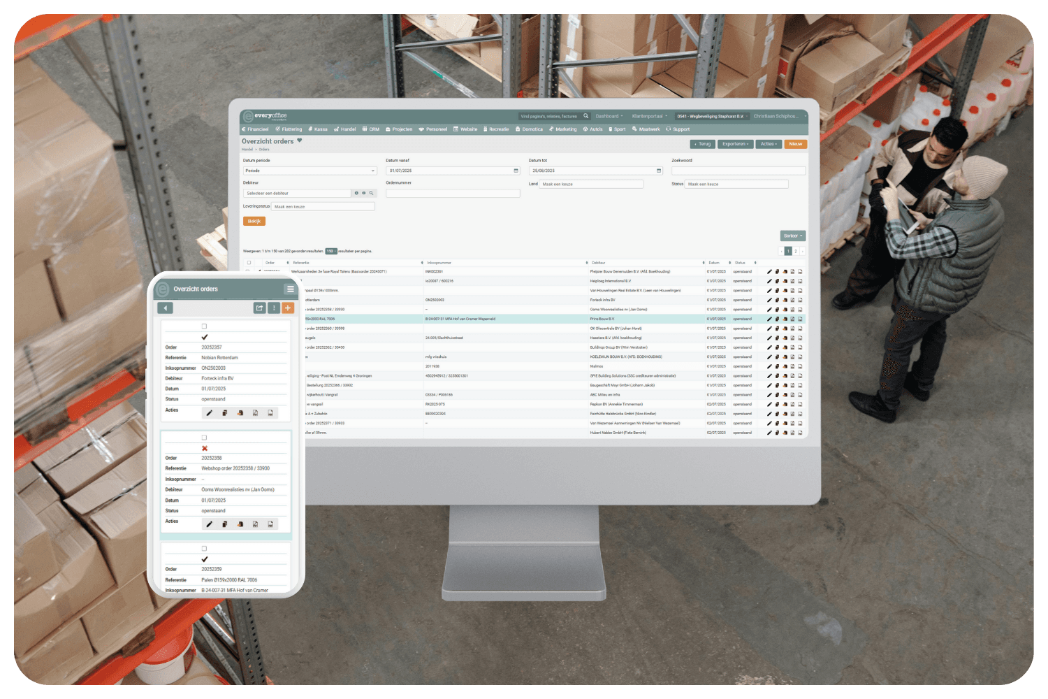 Your daily trade displayed up-to-date and the operational processes supported digitally. From quotations, to invoicing, to generating reports. With EveryOffice you can easily manage your administration and ensure that you are always working with up-to-date data.